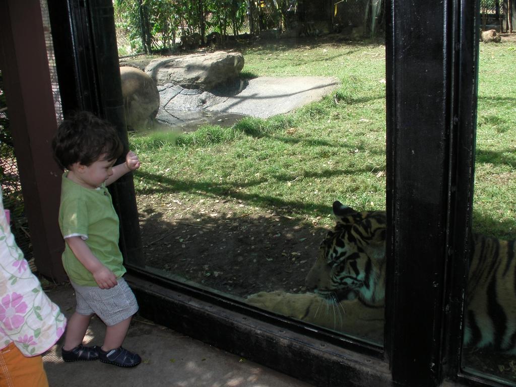 We were very excited that Seth finally slept in until 7:00 am this morning! Yay for all of us! We got ready, and then decided to head off to the Honolulu Zoo before the day got too hot. We all had fun at the zoo. There were lots of animals, and Seth recognized many of them from his baby Einstein animals DVD. We saw elephants (Seth's first comment was "I get on him"), tortoises, monkeys, gorillas, flamingos, tigers (there was this very big picture viewing window where the tiger was on one side and you were on the other, very cool, but a little terrifying!), zebras, rhinos, giraffes, hippos, peacocks, and much more. Seth also had fun running around and playing on the playground.