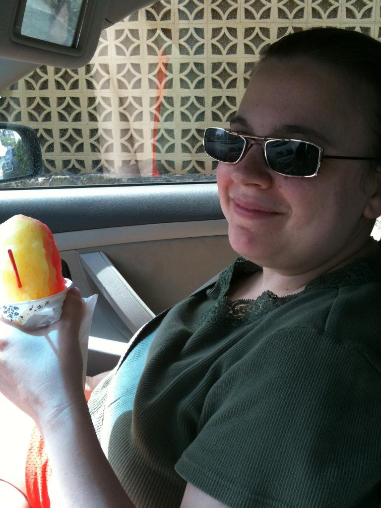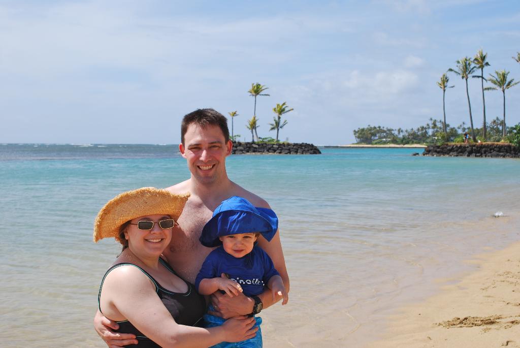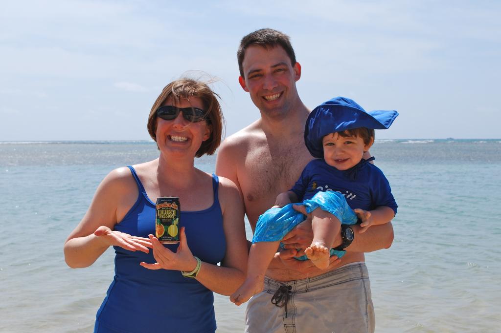 It didn't phase Seth to see a familiar face from home - he just accepts everything at face value! We headed back to the Kahala beach for one more fun time in the sun (with sunscreen, of course!) before heading back home. Seth had fun showing Tanya the beach and the dolphins. After we were done with the beach, Seth immediately fell asleep in the car, and we brought Tanya over to Manoa Marketplace for some manapua - we thought this was fitting since it was the same place we came for lunch on our first day in Hawaii this trip. On the way back to Tanya's hotel, we stopped for shave ice, so Jason could get one more taste before we headed back.
