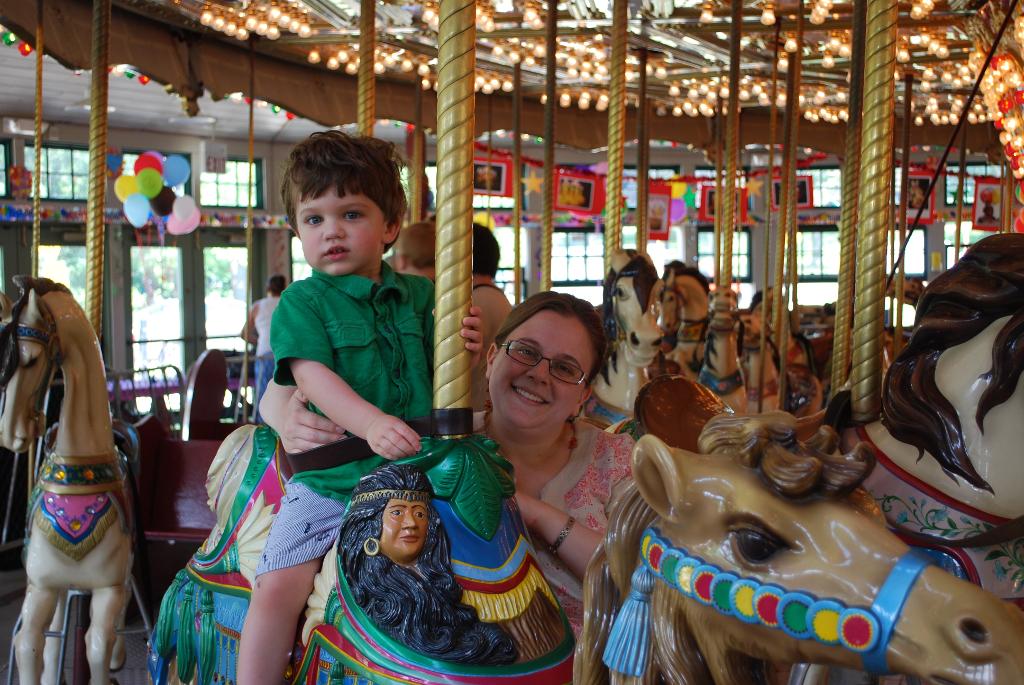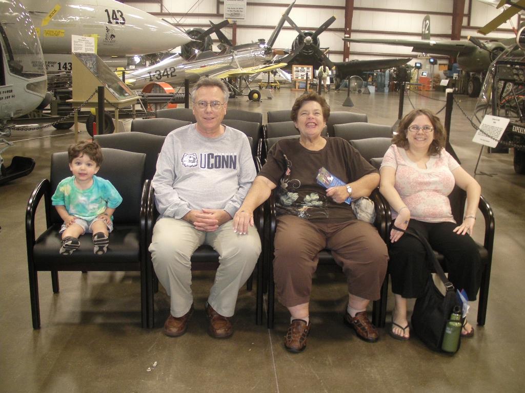 We had lots of fun visits, as always, with Grams, Papa, Geema, Grandpa Joe, Grandma Nancy, and Nana, as well as Seth's many "aunties and uncles." We have taken Seth to some fun new places, including the Holyoke Children's Museum and the New England Air Museum. Over the summer, we took Seth to Music Together class, and back to the same gymnastics class we did last summer. We shared in a farm share program, and Seth had lots of fun going to the farm to pick up the food and flowers and seeing the oxen. Seth went on a merry-go-round for the first time at Roger Williams Park in Rhode Island, and Grandpa Joe, Grandma Nancy, and Nana were there to see it!