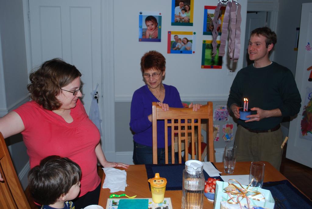 We also celebrated Passover by attending the annual seder at our good friends Richie and Helene's house. Seth was much more curious about the ritual this year, and he had a good time finding the afikomen and getting his prize. Everyone was excited to meet Evan at his first seder! It's so nice to be part of this yearly event! We also celebrated Jason's birthday and Grams' birthday.