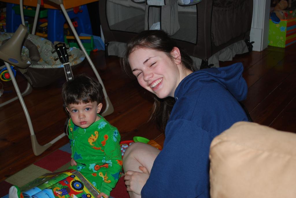 We got to see our niece, Jade, who is graduating from high school and was out visiting from Seattle so Grams and Papa could take her on a trip to scout out colleges. We got to spend one night with her, and it was great to see her! She was so excited to meet Evan, and she had a great time with Seth. Seth hadn't seen Jade for some time, so he didn't exactly remember who she was, but we told him she was family, and he just accepted that and immediately took her into the playroom to play. Such an adaptable little guy! We had an early Easter dinner together before Jade went home.