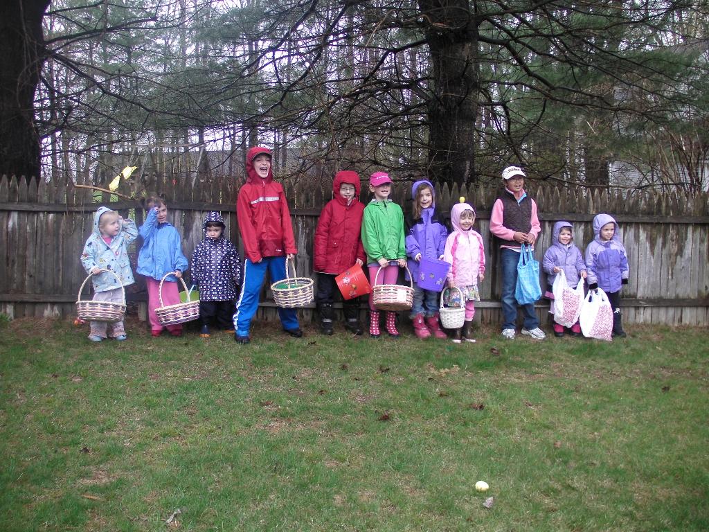 We celebrated Easter with an Easter Egg Hunt at Seth's friend Maeve's grandmother's house - even though it was raining, the kids still had a blast. They had been practicing egg hunts at daycare, so Seth was an old pro. Then, for Easter day, we went up to cousin Lindsay and Jeremy's country club like we did last year. It was great to spend the day with Lindsay, Jeremy, Lila, Zachary, Sachem, Nana, Aunt Sandi, Tom, Grandpa Joe and Grandma Nancy. Seth had so much fun playing with his cousin Lila at the country club and also back at her house. It is always funny how much kids love playing with toys at other kids' houses. Seth also taught Lila how to jump off the little landing into their den - it was hysterical to see the two of them jumping together, Seth running full steam ahead and Lila jumping very daintily! Nana made little Easter baskets for Seth and Lila, which was so sweet. Grandma Nancy also made some wonderful Easter baskets for the boys that Seth and Evan loved!