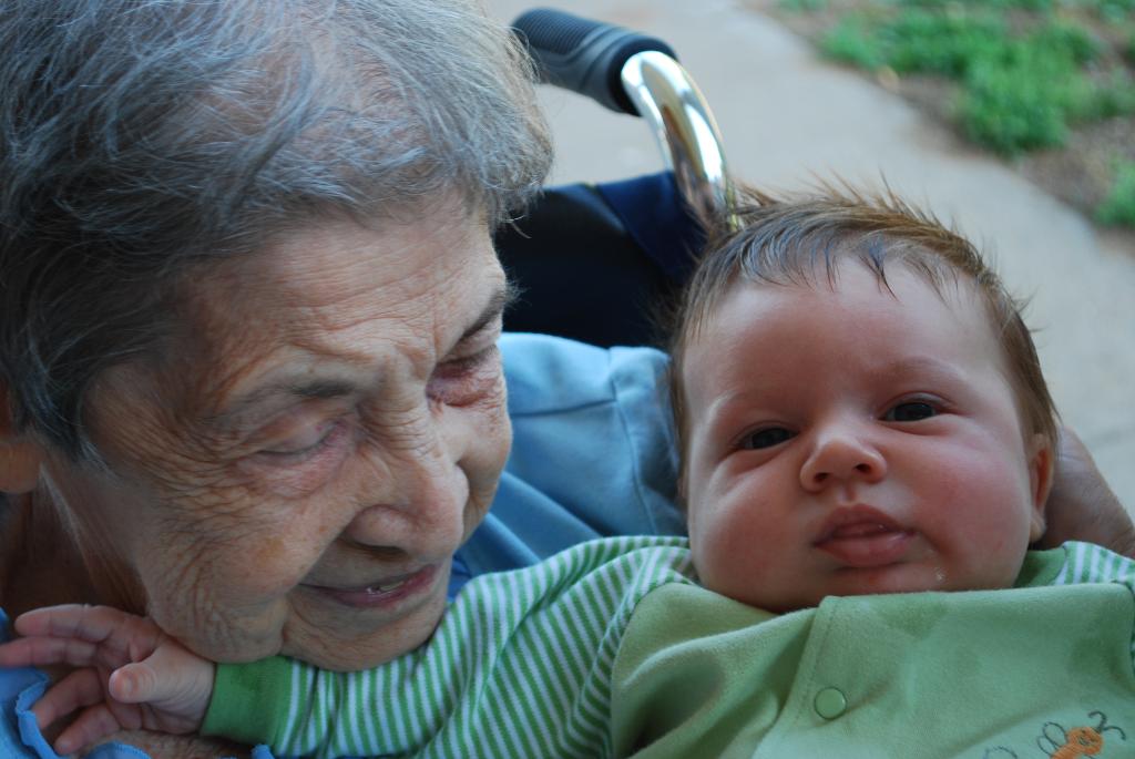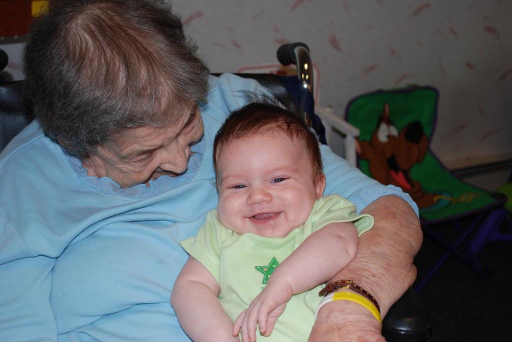 Seth was just four months old when Grammy died. I'll never forget her joy when they were together, they way she held him in her arms and kissed him. She whispered to him, and told him that they had such stories to tell each other. She got so excited when we came to visit, and she always held him tight. Seth gave his first real smile in Grammy's arms, a moment we have forever documented in pictures. I'll never forget the single wail that Seth gave out during Grammy's funeral service, his own way of saying goodbye. When we look at pictures, he knows to identify Grammy, which means so much to me.