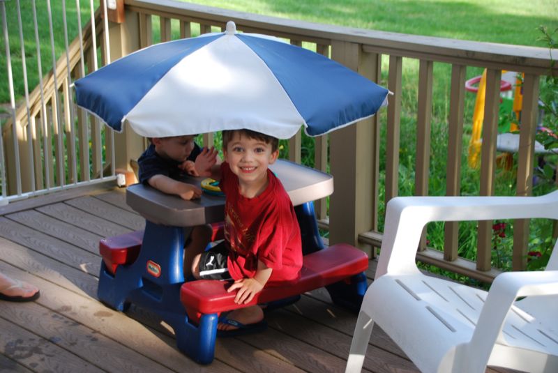 Today was the first day of our summer vacation. Seth finished up kindergarten on Friday, and Evan finished up daycare. I do have a mega-post in the the works dedicated to the babies' development over the last year, but it might take me a little bit, so in the meantime, I want to blog little snippets of our summer, even if they are short.
