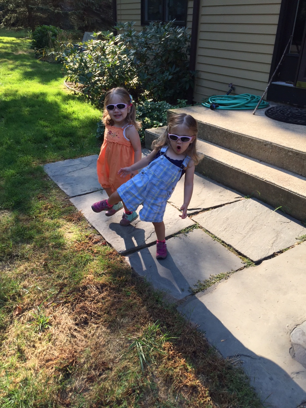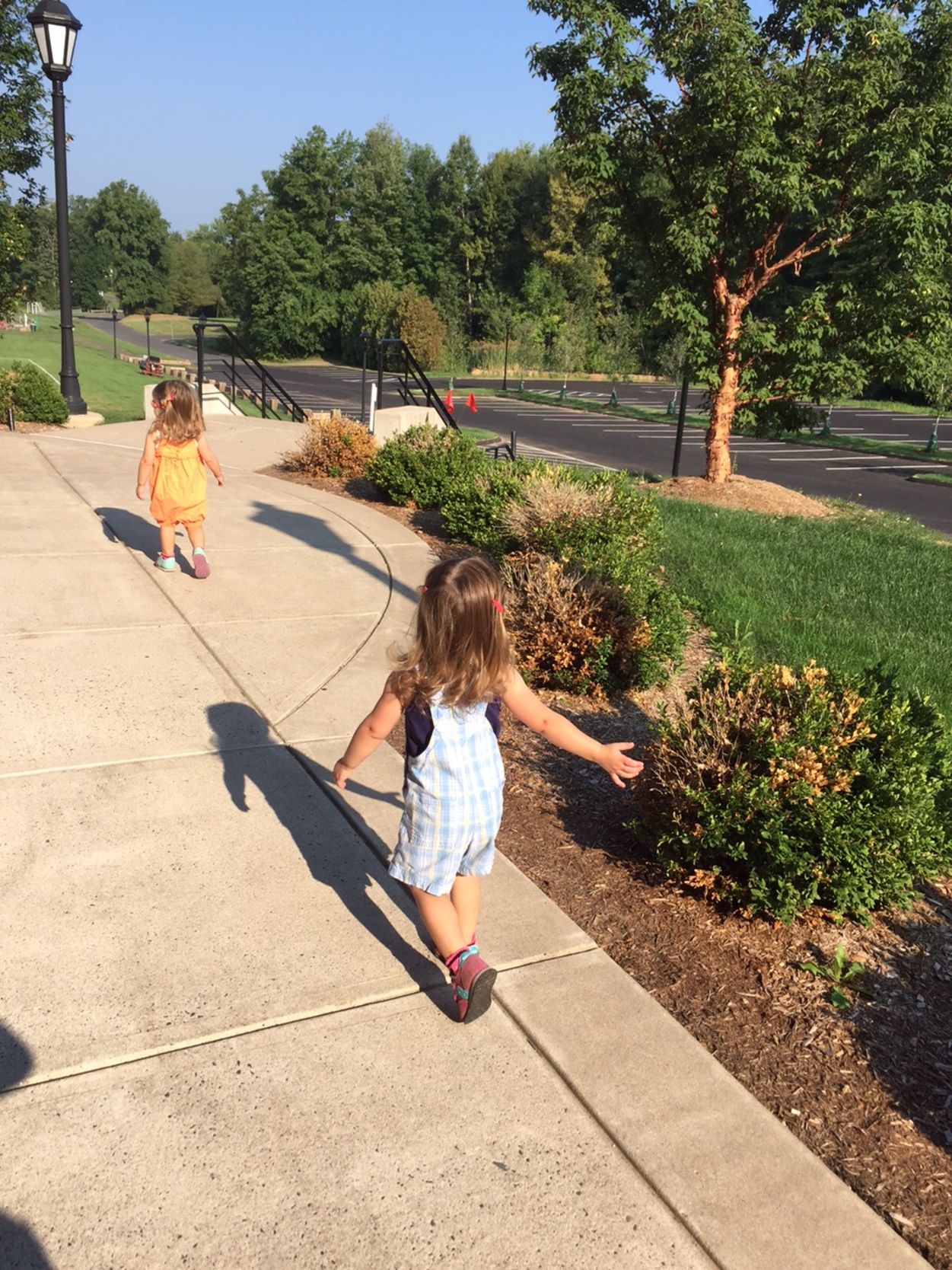I don't usually bring the double stroller with me anymore when I take the girls on short outings. They are able to listen much better, and to hold hands when we're crossing the parking lot. I am really enjoying this stage, as they are still my little girls but it is easier to spend time with them.