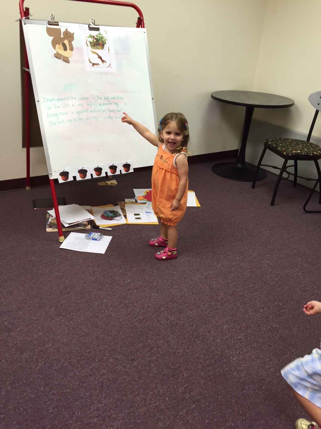 Then we went back home and had a snack, and got ready to go to our first story hour this fall at the Suffield Public Library. We knew today's theme would be squirrels, as Evan is going to story hour on Wednesdays with Tiger School. This is the best job the girls have done sitting still for a story hour program. We went to some programs last year, but then the girls were more interested in escaping the room than participating. They enjoyed the stories, hands-on activities, and squirrel craft.
