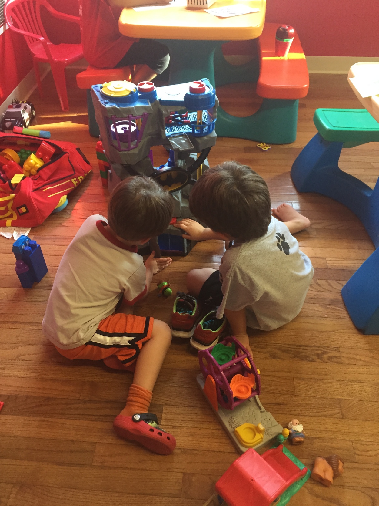 As the oldest, my boys are usually the ones to try things first. Of course, Seth and Evan are not the same age, but since the girls joined our family, they often get grouped together. Sometimes, this is exciting for them, and sometimes, well, it isn’t! My boys love to play with toys, play outside, and play with Legos. They get excited over a new toy in the gymnastics waiting room, and they are full of energy for an impromptu trip to the playground. They love to read, do puzzles, and watch videos. They are handsome and smart and funny; they like to go for haircuts together and to run around until their cheeks are red. They are sensitive and loving, moody and argumentative. They are my boys.