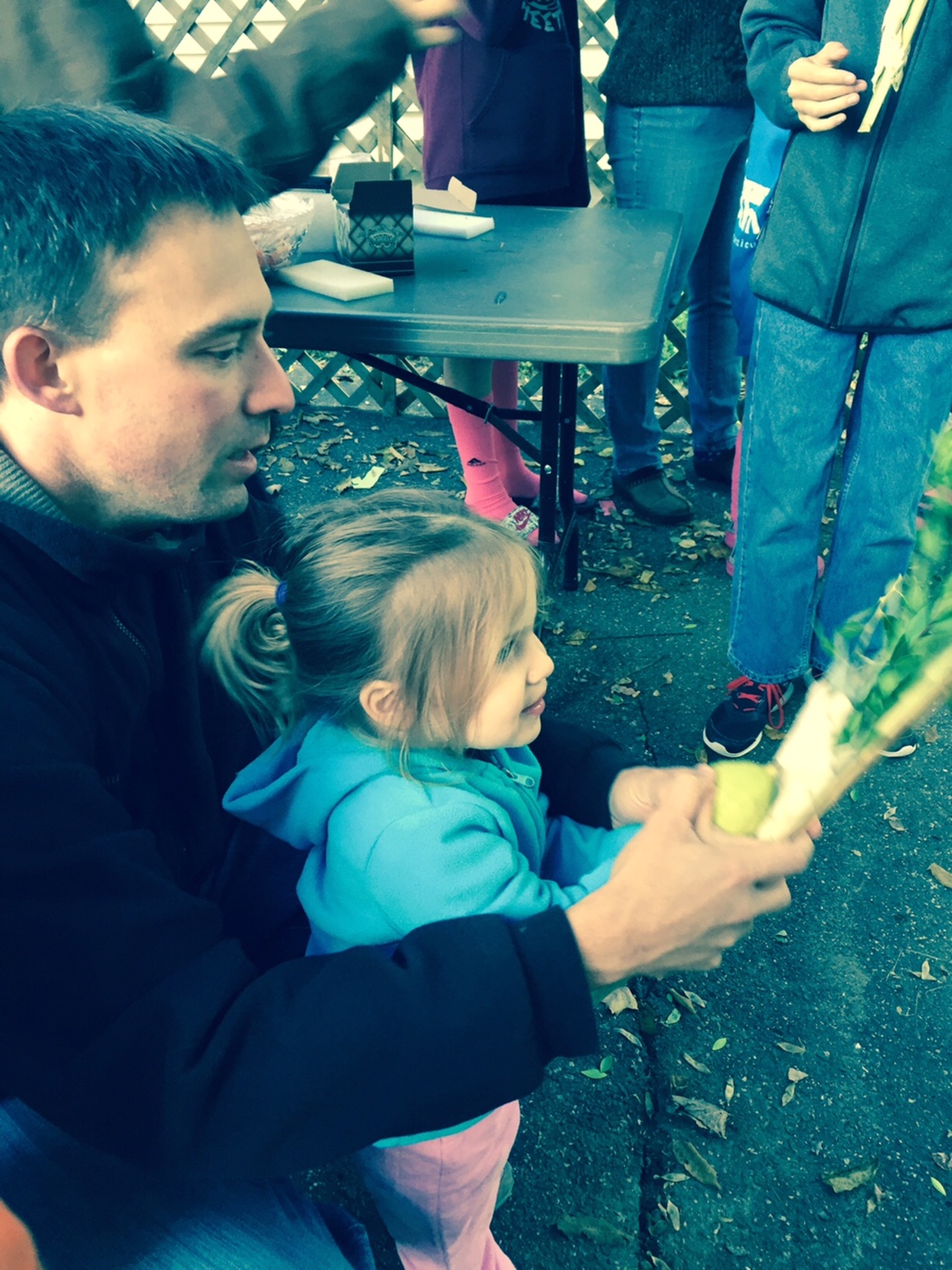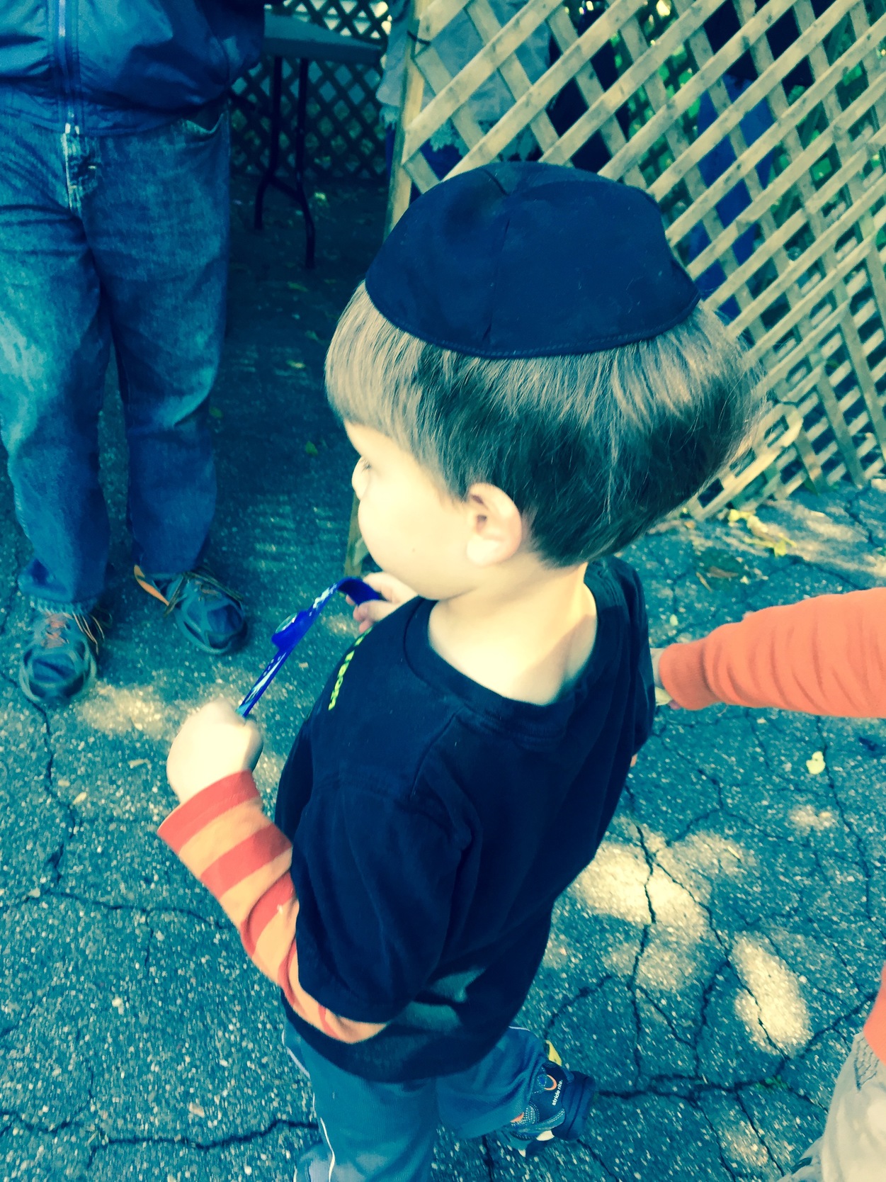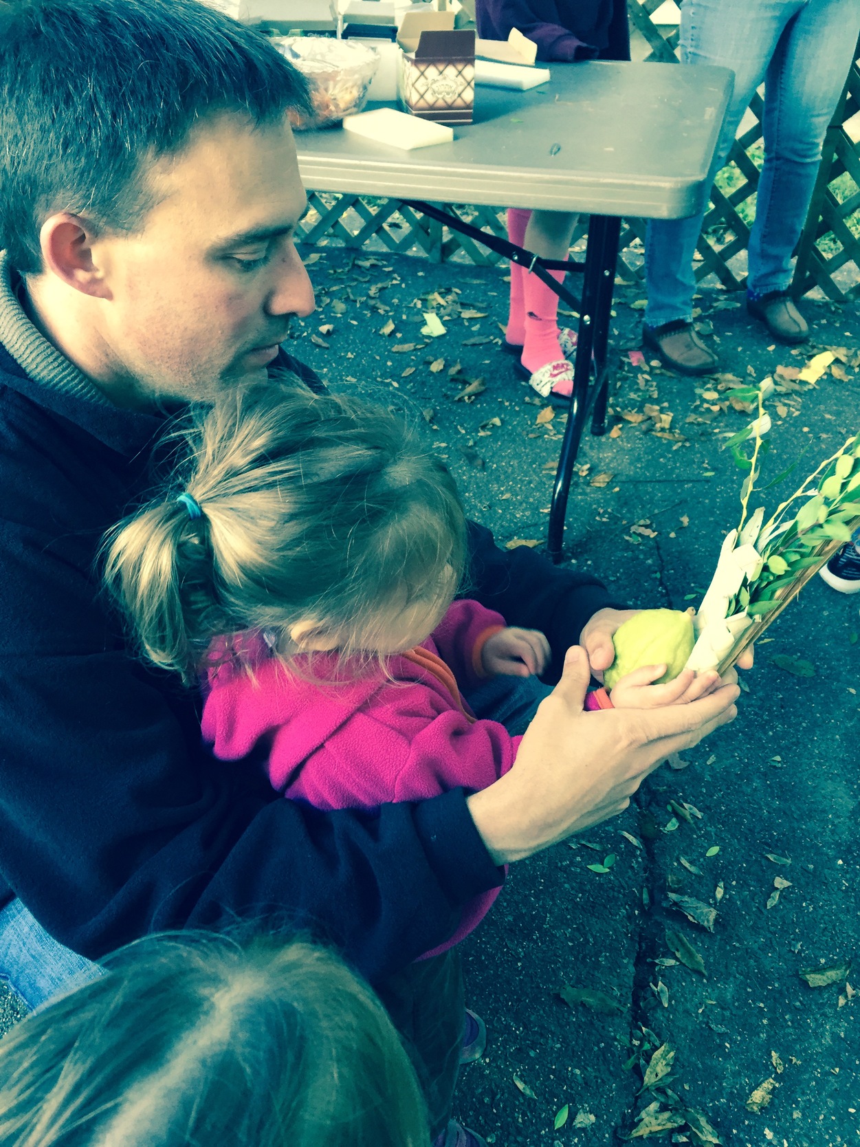 The rabbi was encouraging us to think of different parts of the lulav (the stalk-like branch made of palm, myrtle, and willow), and the etrog (yellow citrus-like fruit) as parts of our own bodies - our spines, our limbs, our eyes, our mouths. If we are fortunate, we are in control of how we interact with our surroundings - what we say to our children, how we embrace them and in turn teach them to embrace change.