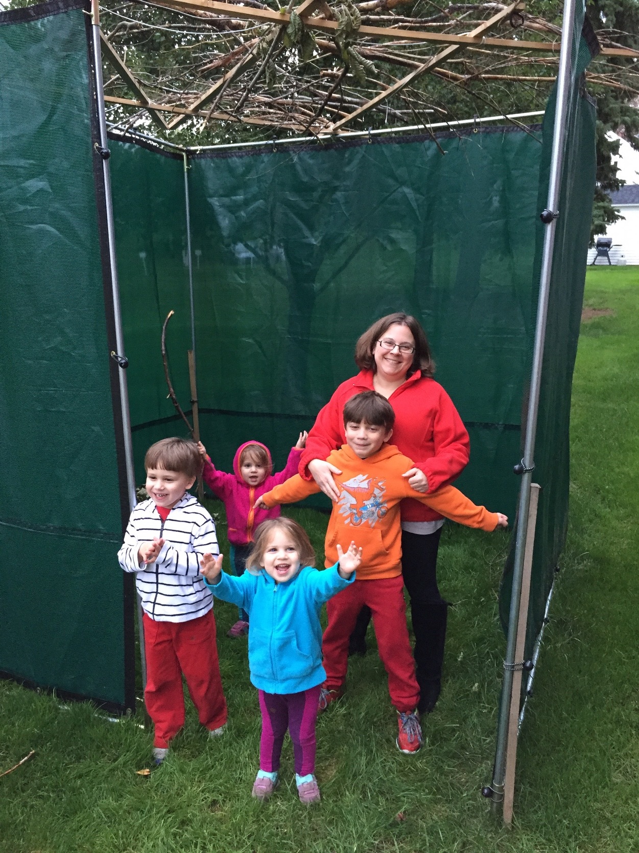 So we will take time in the middle, the messy, crumb-laden, syrup-sticky middle. But we won't be afraid to face change when it comes. And next year, we will take time in our own sukkah, passed on as a mitzvah (good deed) from our friends from temple!