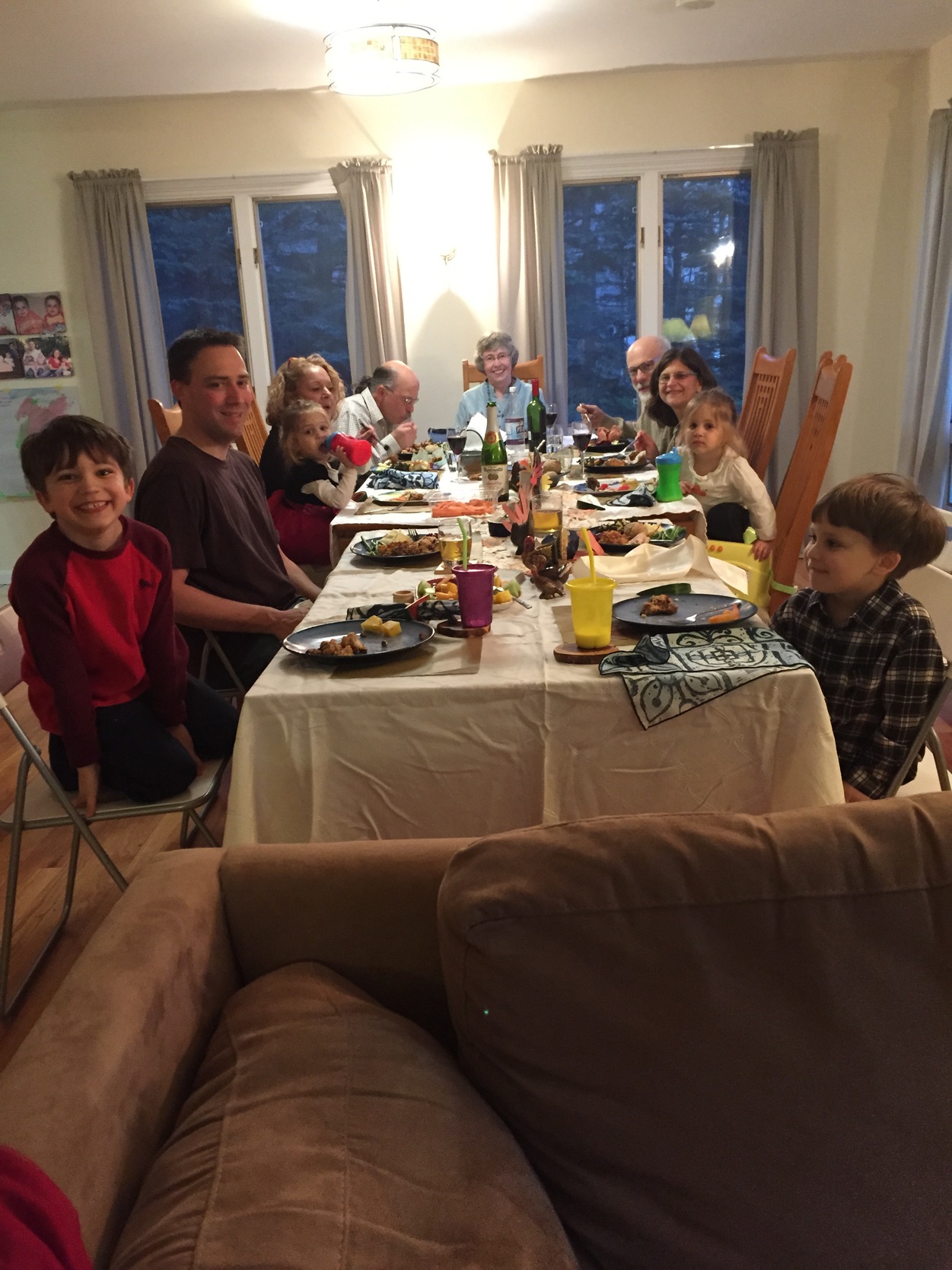 As has become the tradition since we moved into our house, we hosted Thanksgiving. The family agrees it is easier for us to provide the space, and we love it! The kids were able to help with the table setting and the decorating. And we are the luckiest because our family brings all the food! Between Geema and Michael, Aunt Michele and Uncle Bill, and Grams, we hardly prepared anything. We really appreciate our family members’ hard work, and we all had a great time. The children were well-behaved (it helped that the boys were focused on putting together a new Lego set for much of the time), and we had a lovely evening enjoying each other’s company. It was really simple, non-stressful, and wonderful.