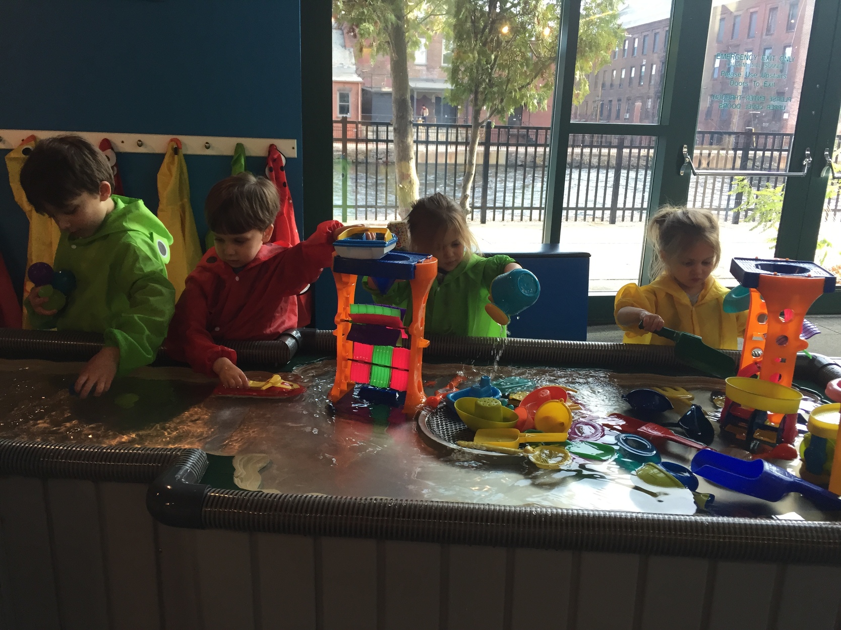 We ended the visit, strategically, at the water table, due to prior experience. The children had a blast, and afterwards they all needed a full change to dry clothes before we got back in the car to go home.