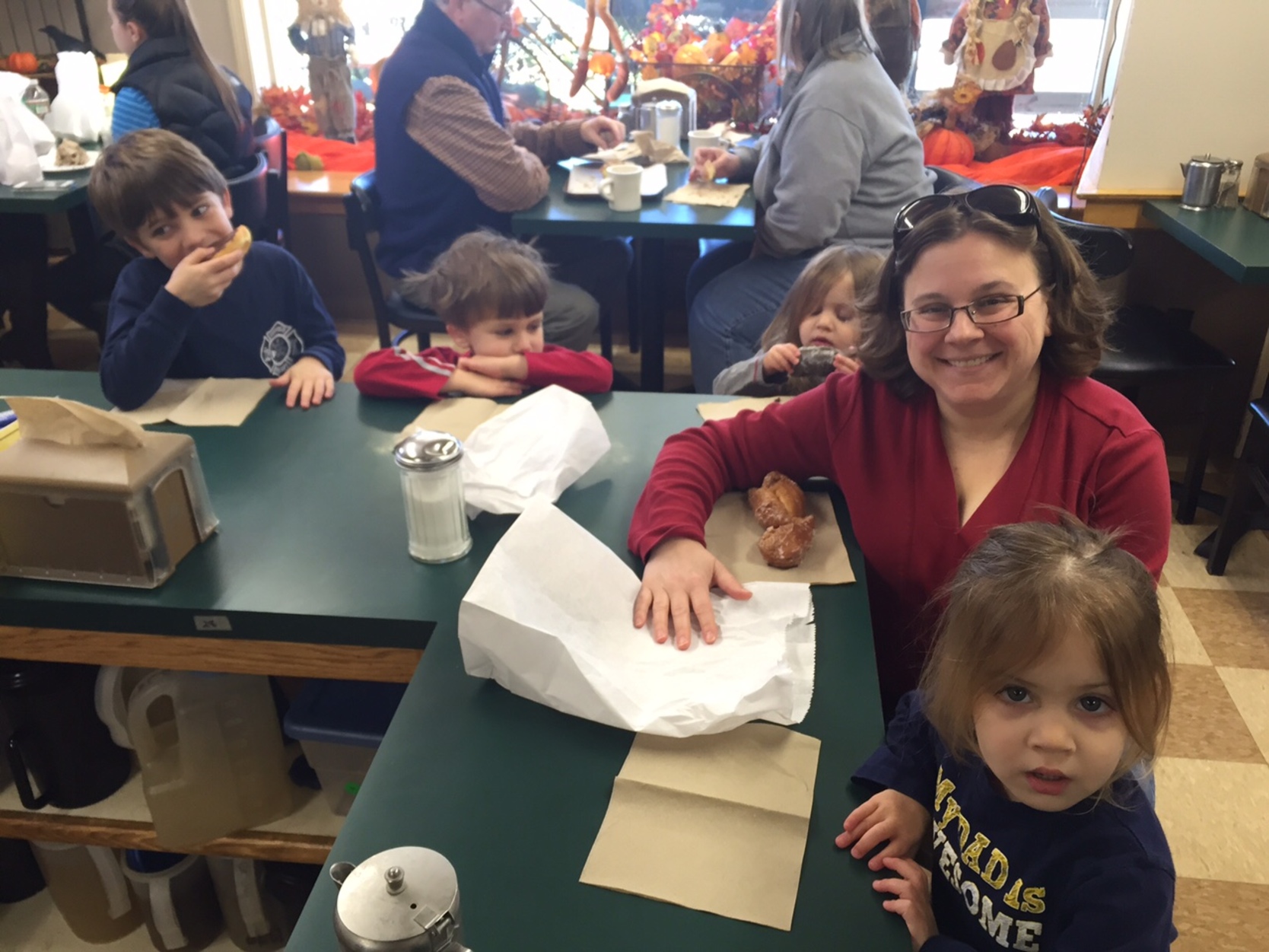 Sunday we decided to be less ambitious, as the girls had tired of taking their naps in the car on the way home from children’s museums. After a leisurely morning at home, we took a trip to Mrs. Murphy’s Donuts in Southwick - we had never actually been there before. They do indeed have extremely delicious donuts! It was extremely gratifying to have a couple we chatted with at the counter tell us they thought our children were well-behaved!