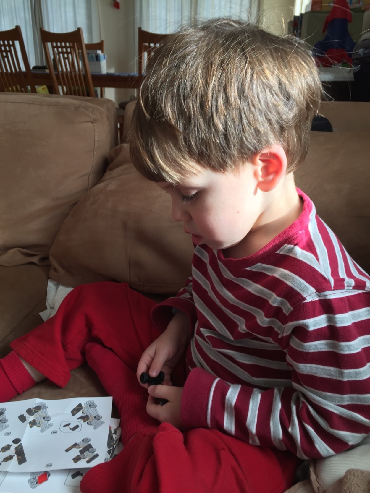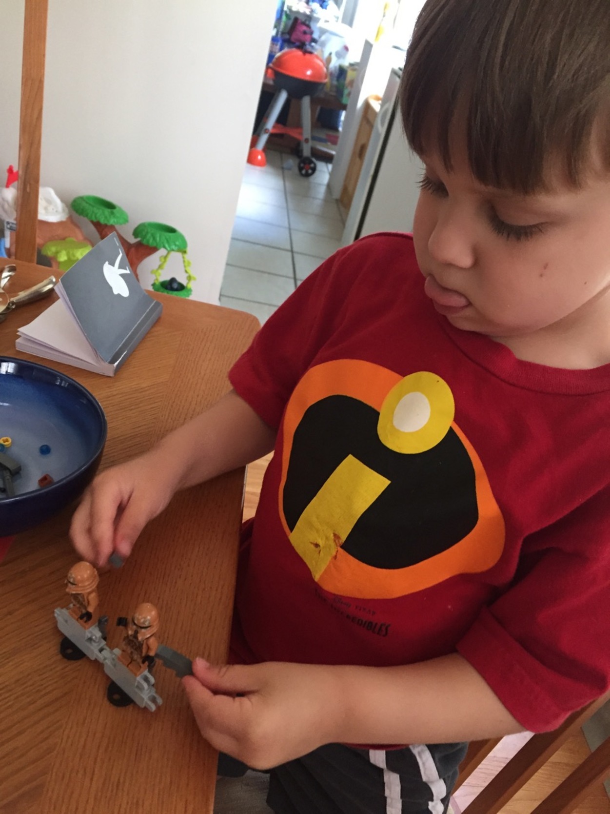 When you concentrate on something, you like to stick your tongue out as you work. This signals to us that you are really working hard. These days, it’s usually Legos. We have been amazed how you picked up the skill of assembling Lego kits so quickly, first with our help and from watching Seth, but then taking off with incredible enthusiasm on your own. Now, nothing excites you more than a new Lego set, and you like playing with them just as much as putting them together. You like to pore over the manual even after you have finished your creation, and you especially like the 3-in-1 Creator sets because you can take them apart and make them into something else.