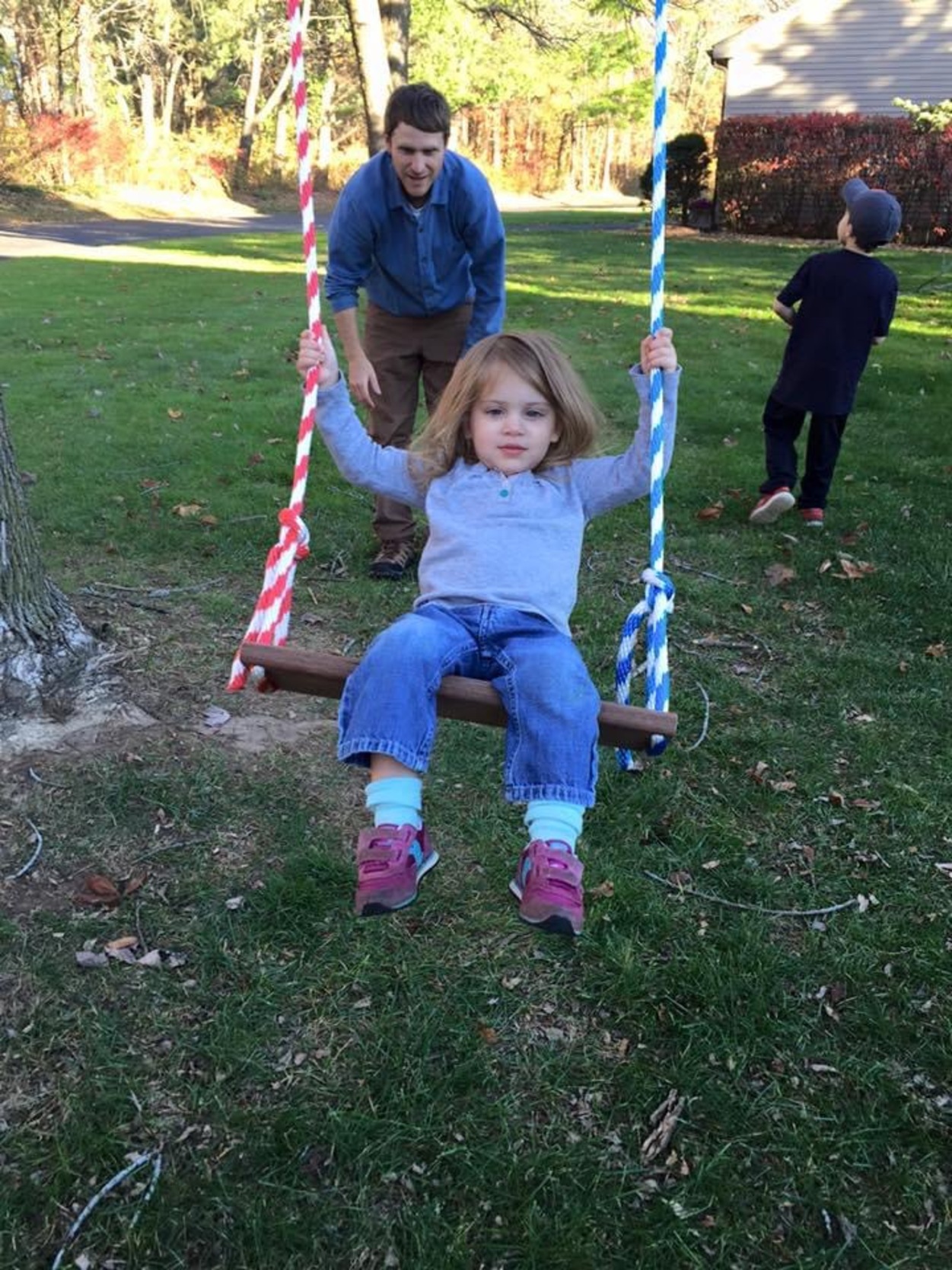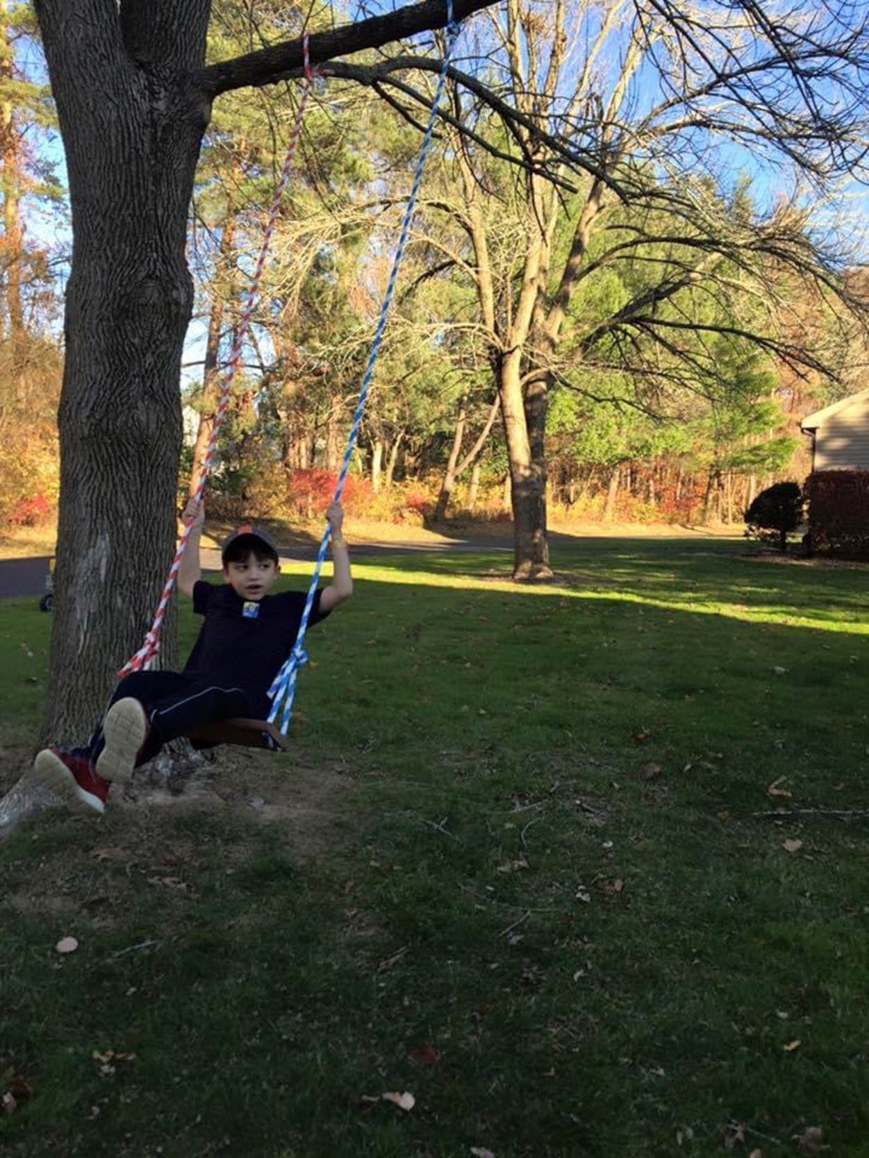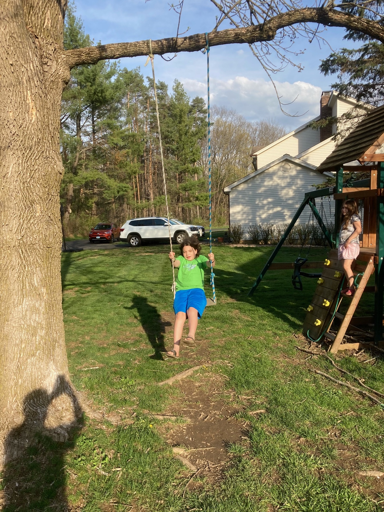 My brother built a swing and attached it to a branch of this tree, for my children.