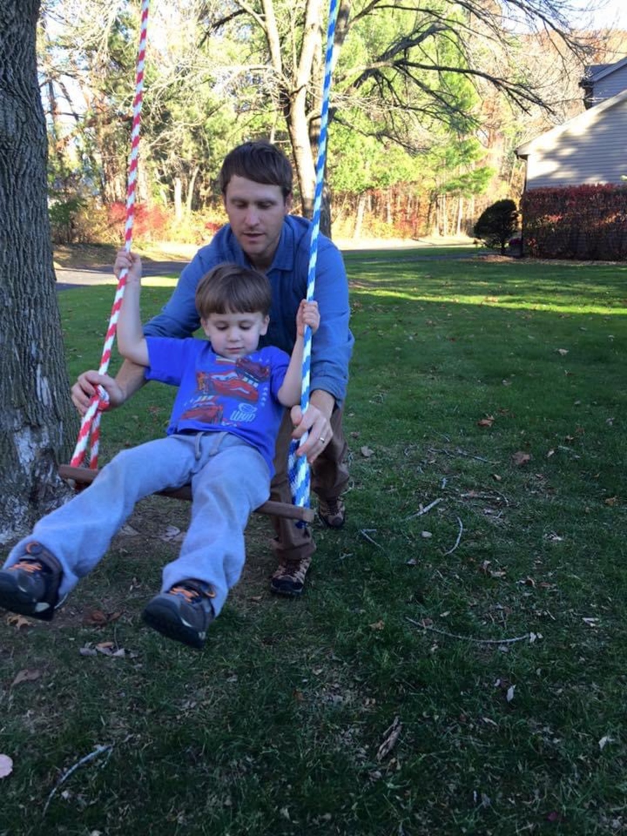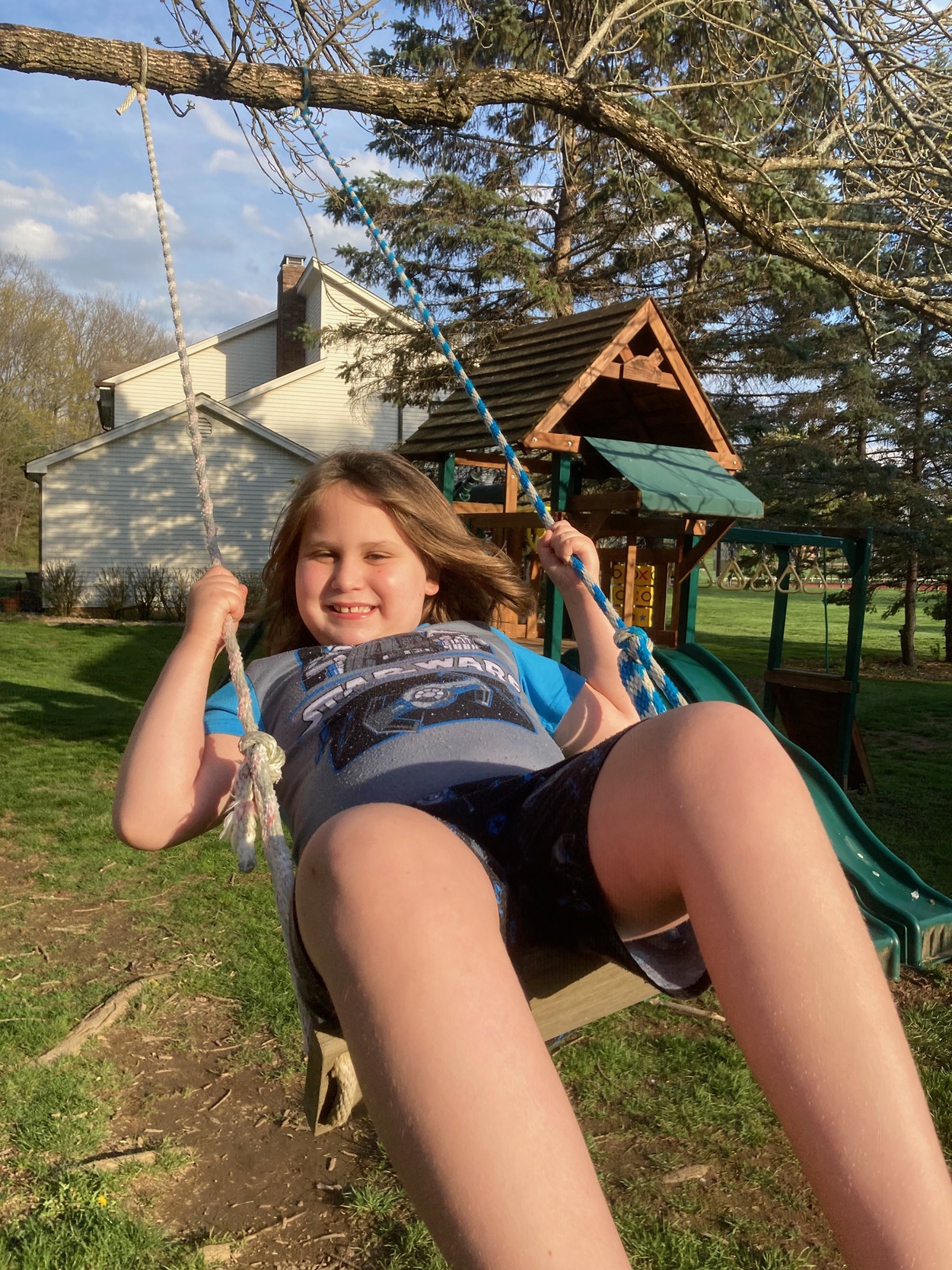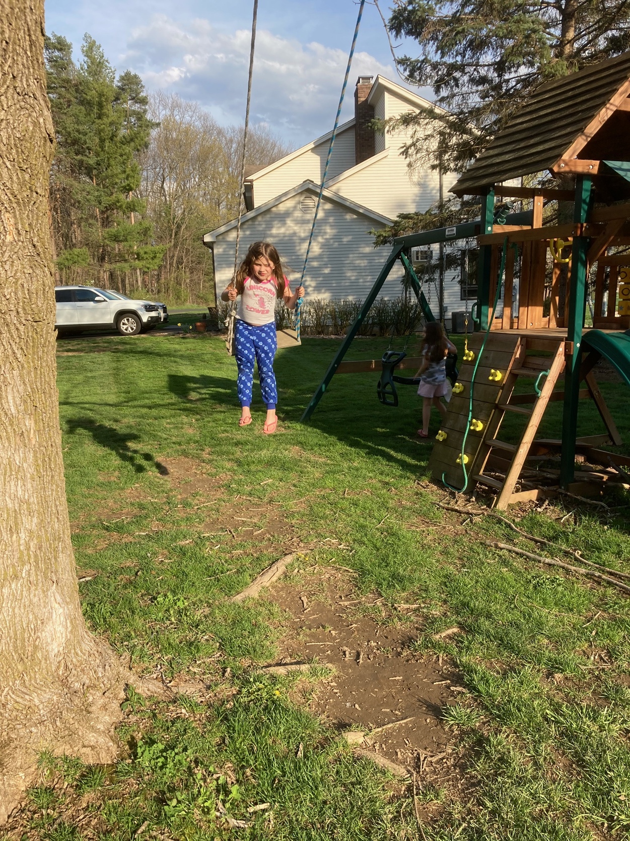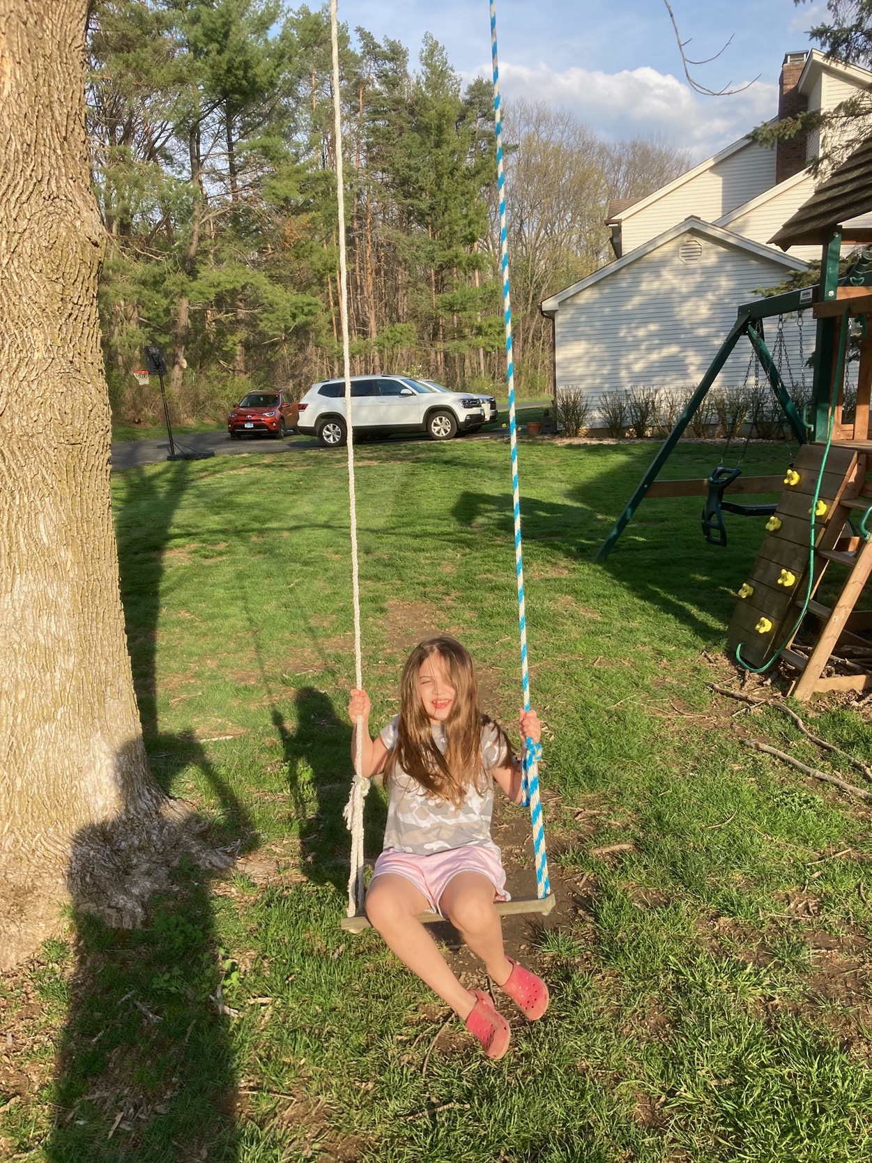 My brother built a swing and attached it to a branch of this tree, for my children.